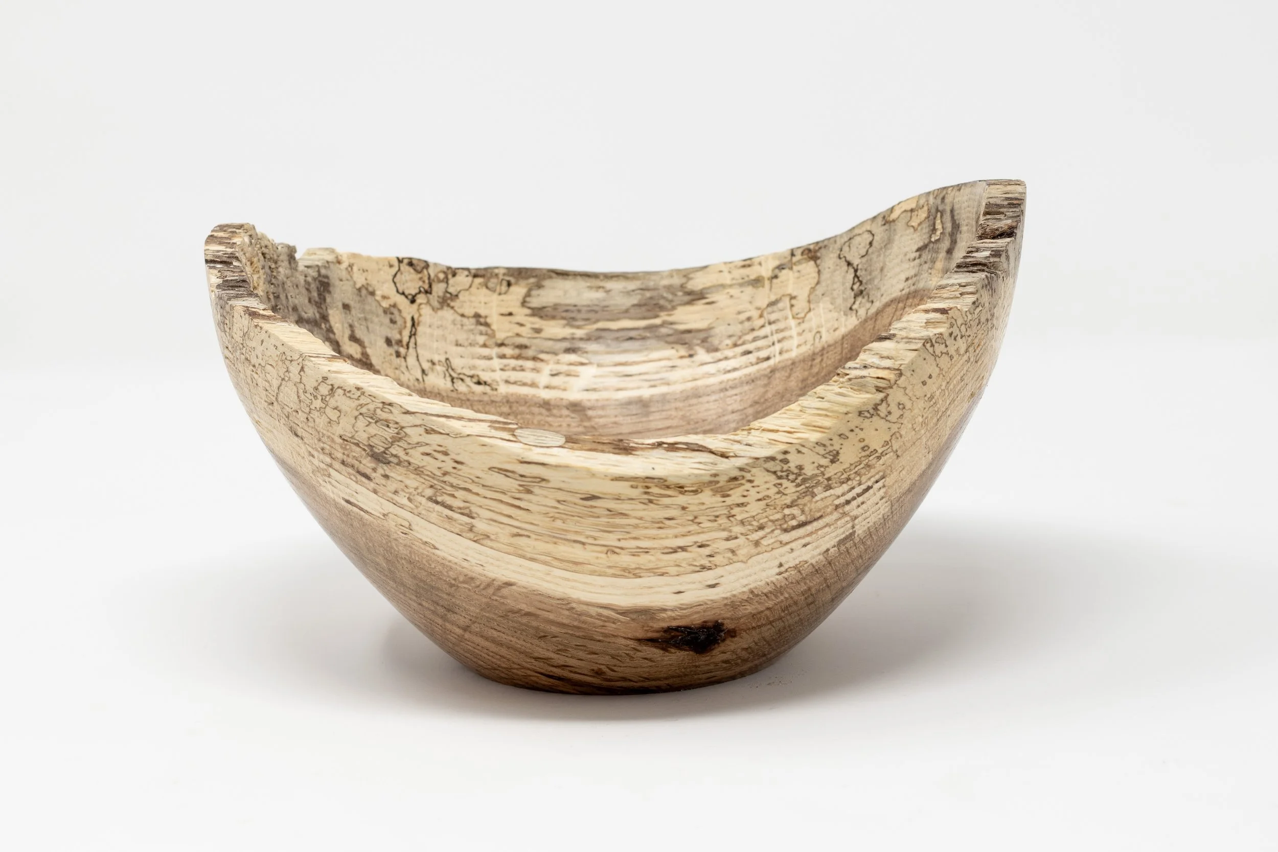 This bowl was handcrafted from the branch of a large oak tree that still stands in front of Dunham Laboratory on lower Hillhouse Ave. The branch fell during a storm in the summer of 2019. This is bowl #10 of the 37 bowls that will be crafted from this tree.